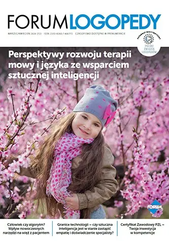 W tym wydaniu m.in: Certyfikat Zawodowy Logopedy Polskiego Związku Logopedów, blaski i cienie sztucznej inteligencji w terapii logopedycznej, potencjał algorytmów uczenia maszynowego w logopedii, granice wykorzystania aplikacji w terapii logopedycznej.
