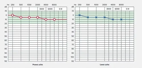 Ryc. 1. Audiogram – wynik badania słuchu audiometrii tonalnej Źródło: https://www.audika.pl/blog/audiometria-tonalna [dostęp: 18.11.2025].