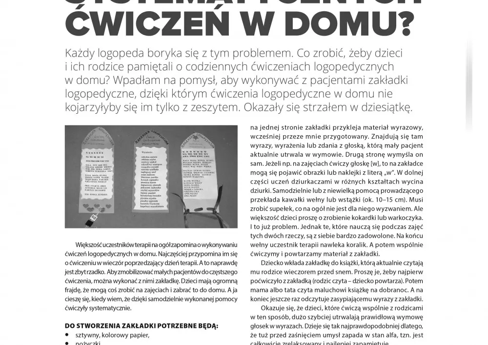 W tym miesiącu opisujemy różne formy aktywizacji pacjenta, które wspomagają terapię logopedyczną – metodę werbo tonalną, wokalistyczną metodę stosowaną w terapii dyzartrii i hipoterapię. Interesujący jest również artykuł Marty Surgi i Joanny Korczak-Grochowskiej pt. „Integracja odruchów w terapii logopedycznej”. Autorki wymieniają w nim wybrane odruchy pojawiające się w okresie rozwojowym, które wpływając bezpośrednio na rozwój mowy. „Na kształtowanie się umiejętności komunikacji i mowy na najwcześniejszym etapie naszego rozwoju wpływa przede wszystkim motoryka ustno-twarzowa, a w jej ramach – prawidłowy rozwój i integracja odruchów” – wyjaśniają ekspertki.