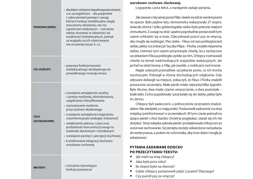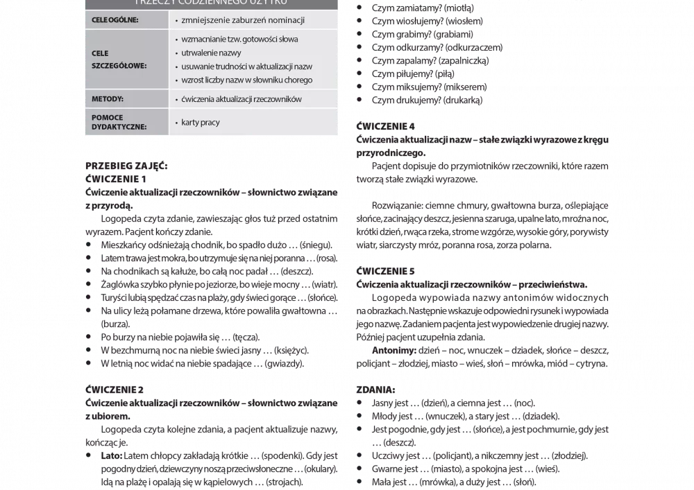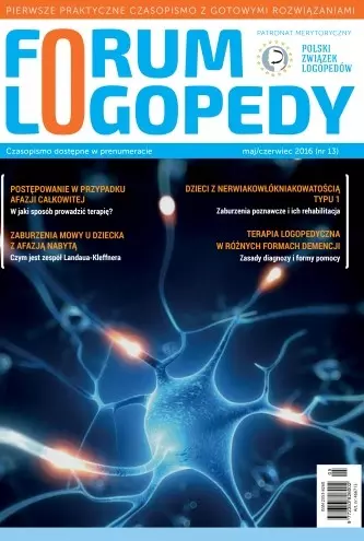 Temat numeru poświęcony jest problematyce diagnostyki i terapii ciężkiego zaburzenia mowy, jakim jest afazja całkowita. Osoba cierpiąca na tę chorobę nie odpowiada na pytania, nie wykonuje poleceń, nie wypowiada ani nie powtarza słów. Chory przejawia też zakłócenia innych zdolności – uwagi, pamięci czy rejestrowania obrazu. Symptomy te obserwowane są również u osób cierpiących na zespół Landaua Kleffnera. Zaburzenia poznawcze tego typu mogą występować u osób w różnym wieku. Afazja u dzieci często objawia się brakiem postępów w nauce mówienia. Terapia logopedyczna w pierwszym etapie wiąże się z nawiązywaniem kontaktu emocjonalnego z pacjentem, pobudzaniem go do działań i wspieraniem. Afazja dziecięca przejawia się tym, że dziecko późno zaczyna mówić, zniekształca słowa lub ma trudności w wypowiadaniu wyrazów. Ćwiczenia logopedyczne powinny zachęcać chorego do współpracy i odbywać się po włączeniu rodziny w proces terapeutyczny. W wydaniu nie zabrakło również scenariuszy zajęć dla pacjentów z afazją z zaburzeniami nazywania i rozumienia oraz pomysłów na spotkania terapeutyczne z dziećmi wykazującymi trudności w zapamiętywaniu.