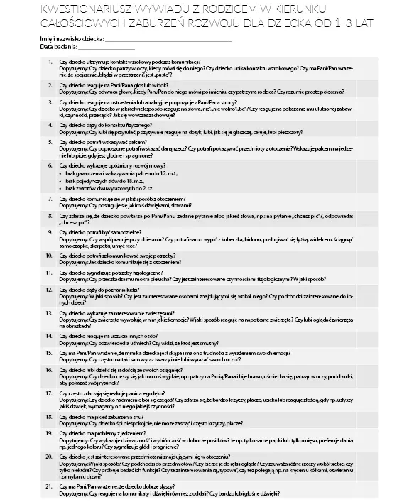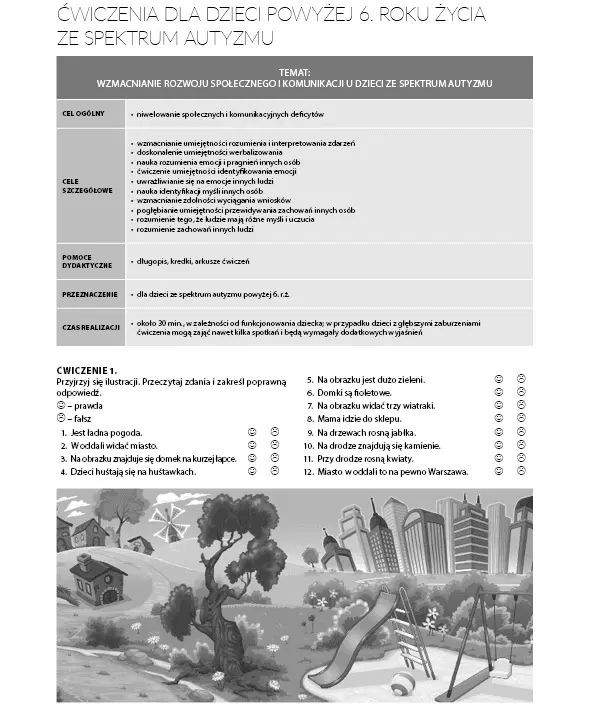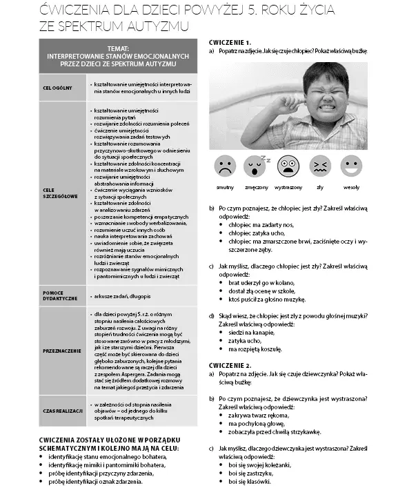 - Ćwiczenia dla dzieci powyżej 5. roku życia ze spektrum autyzmu,