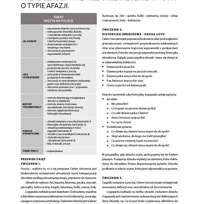 - Scenariusz zajęć dla dzieci w młodszym wieku szkolnym z niedokształceniem mowy o typie afazji,