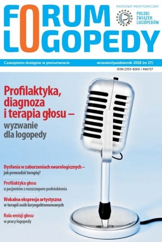 Profilaktyka, diagnoza i terapia głosu jako zadanie i wyzwanie dla logopedy to temat przewodni dwudziestego siódmego wydania dwumiesięcznika „Forum Logopedy”. Zagadnienia związane ze szczegółową diagnozą i terapią logopedyczną głosu przybliża dla Państwa dr n. hum. Anna Walencik-Topiłko w artykule otwierającym niniejszy numer czasopisma.
